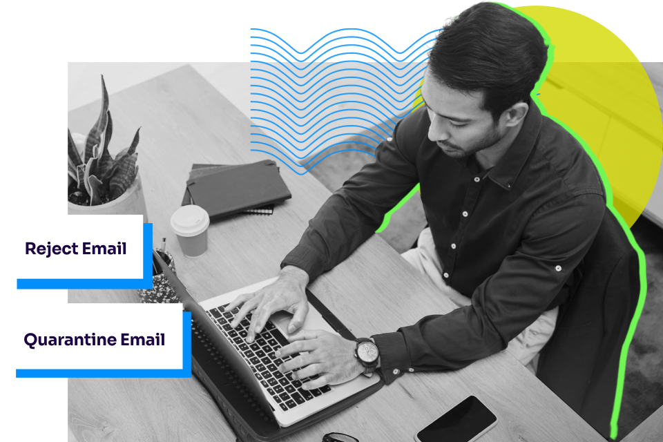 Valimail’s DMARC enforcement solutions identify unapproved sender emails. Once you’re at DMARC enforcement, you can reject the email entirely, quarantine the email for review, or take other actions to banish all unauthorized email activity.